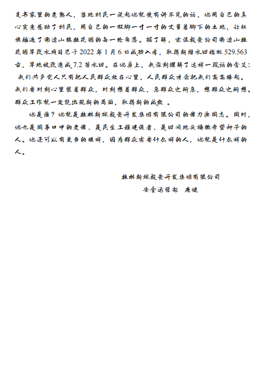 新城投集團(tuán)第三黨支部近日成功舉辦了“講好我身邊的黨員故事”主題征文比賽,活動(dòng)以弘揚(yáng)黨員先鋒模范作用、展現(xiàn)基層黨員奉獻(xiàn)精神為宗旨,通過講述身邊黨員的感人事跡,進(jìn)一步凝聚支部向心力,推動(dòng)黨的二十大精神落地生根。本次活動(dòng)取得了顯著成效,為集團(tuán)黨建工作注入新活力。